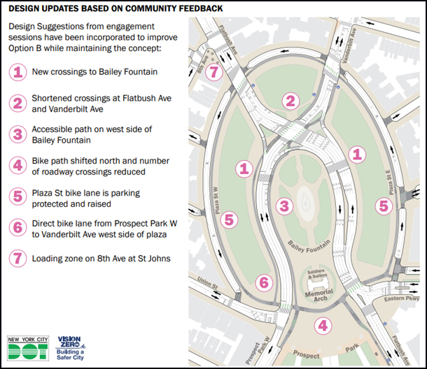 DOT initially offered three possible designs, from very light touches to completely connecting Prospect Park and Grand Army Plaza in the manner announced on Monday.