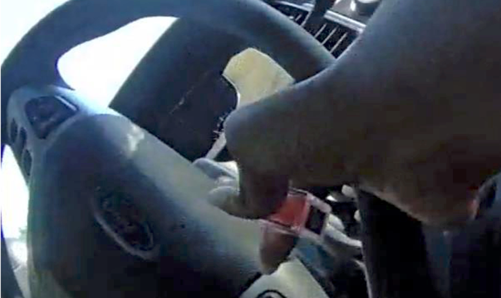 “Officer Devone had a lip gloss bottle in her right hand and an applicator in her left,” the report added, before concluding, “There is no indication that she was unable to steer because of what was in her hand.”